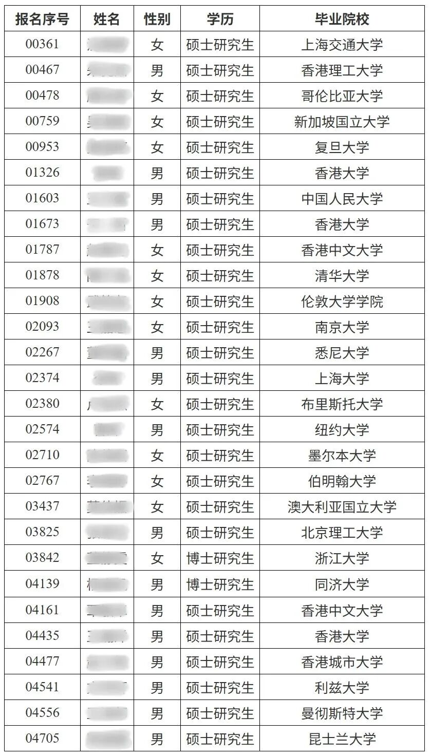 从2025年青浦区储备人才拟录用公示名单不难看出,海外留学生占比较高,入选者大多毕业于全球知名院校!